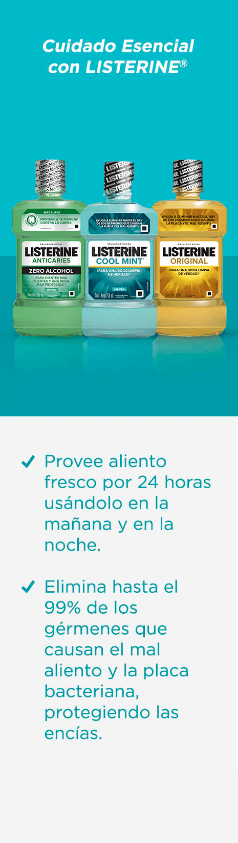 Ve más allá de una solución rápida para cubrir temporalmente el problema. El enjuague bucal LISTERINE® penetra más profundo hasta atacar la causa del mal aliento desde la raíz.